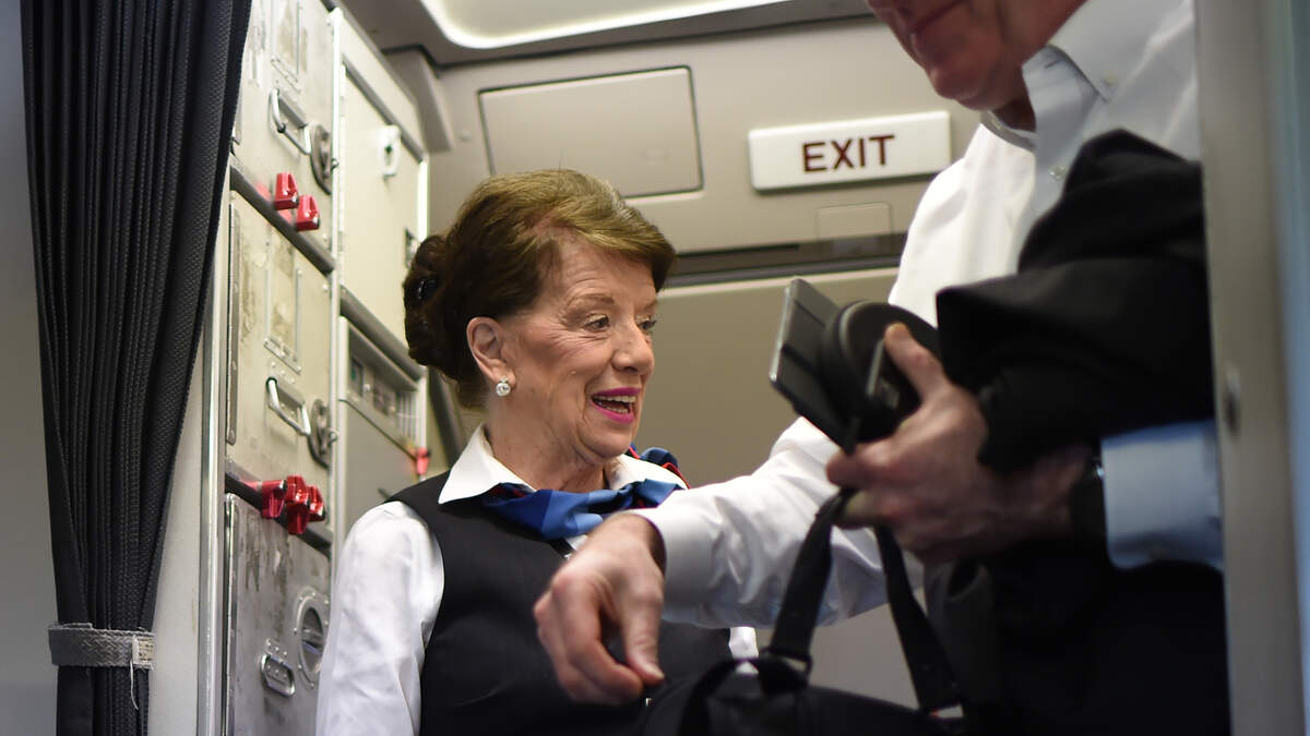 This is such a great Pick Me Up: It proves you can keep doing the job you love for as long as you like. Check this out. American Airlines flight attendant Bette Nash is now in the Guinness Book of World Records. Bette Nash started her career in 1957, and at 86 is the oldest attendant in the world. Nash does everything all crew members do, including taking continuing FAA training. She started at Eastern Airlines and a series of mergers landed her at American. Bette gets her pick of routes and has been mostly loyal to the New York to Washington to Boston Shuttle most of her career. She likes it because she can be home every night to take care of her disabled son. Bette shares that things are very different these days. Early in her career she had to maintain a certain weight or be fired, had to be a certain height, the flights were only $12, and they sold cigarettes on board the plane (with matches). I just love her.